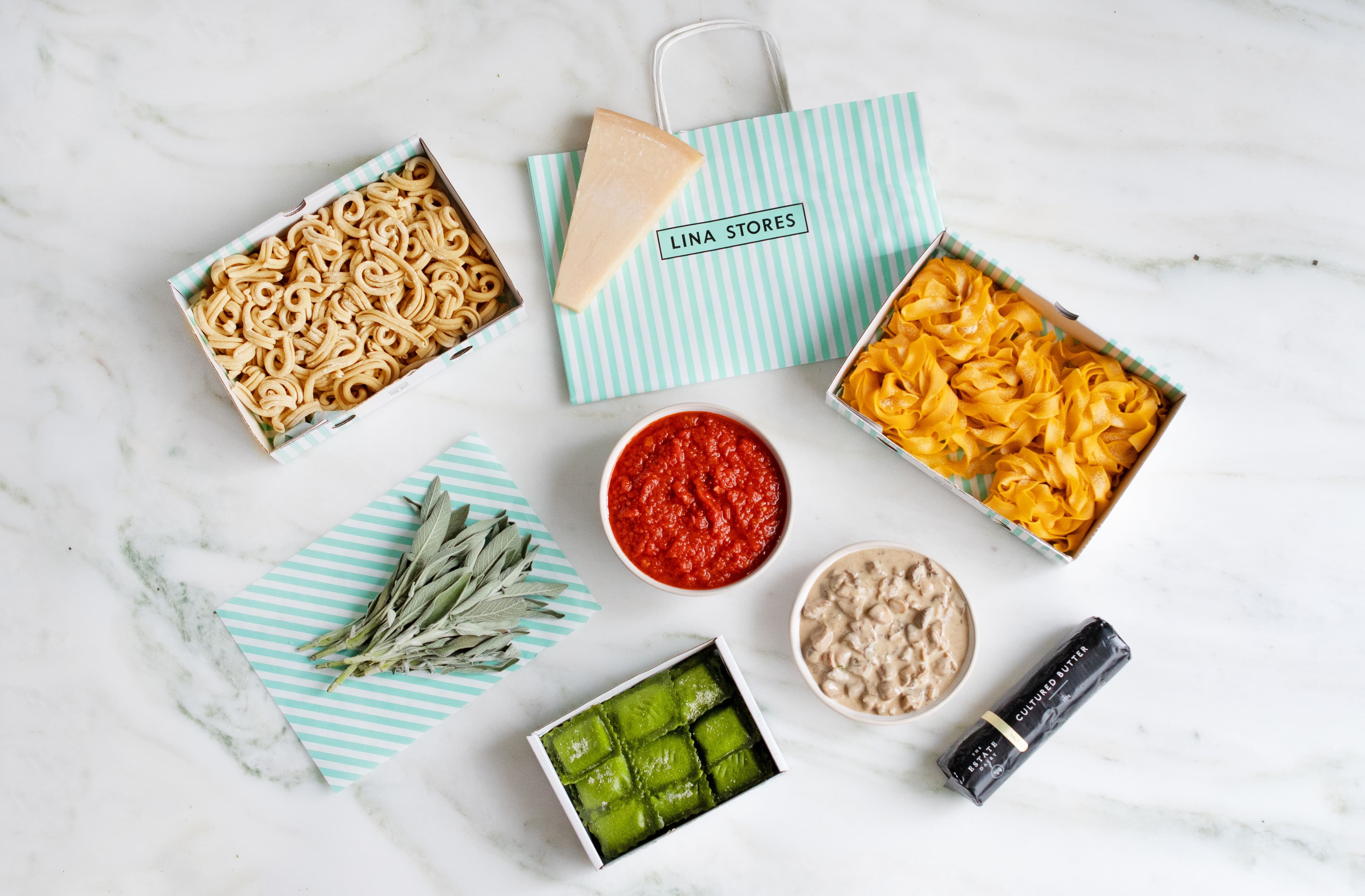 A selection of our signature fresh pasta & homemade sauces providing circa