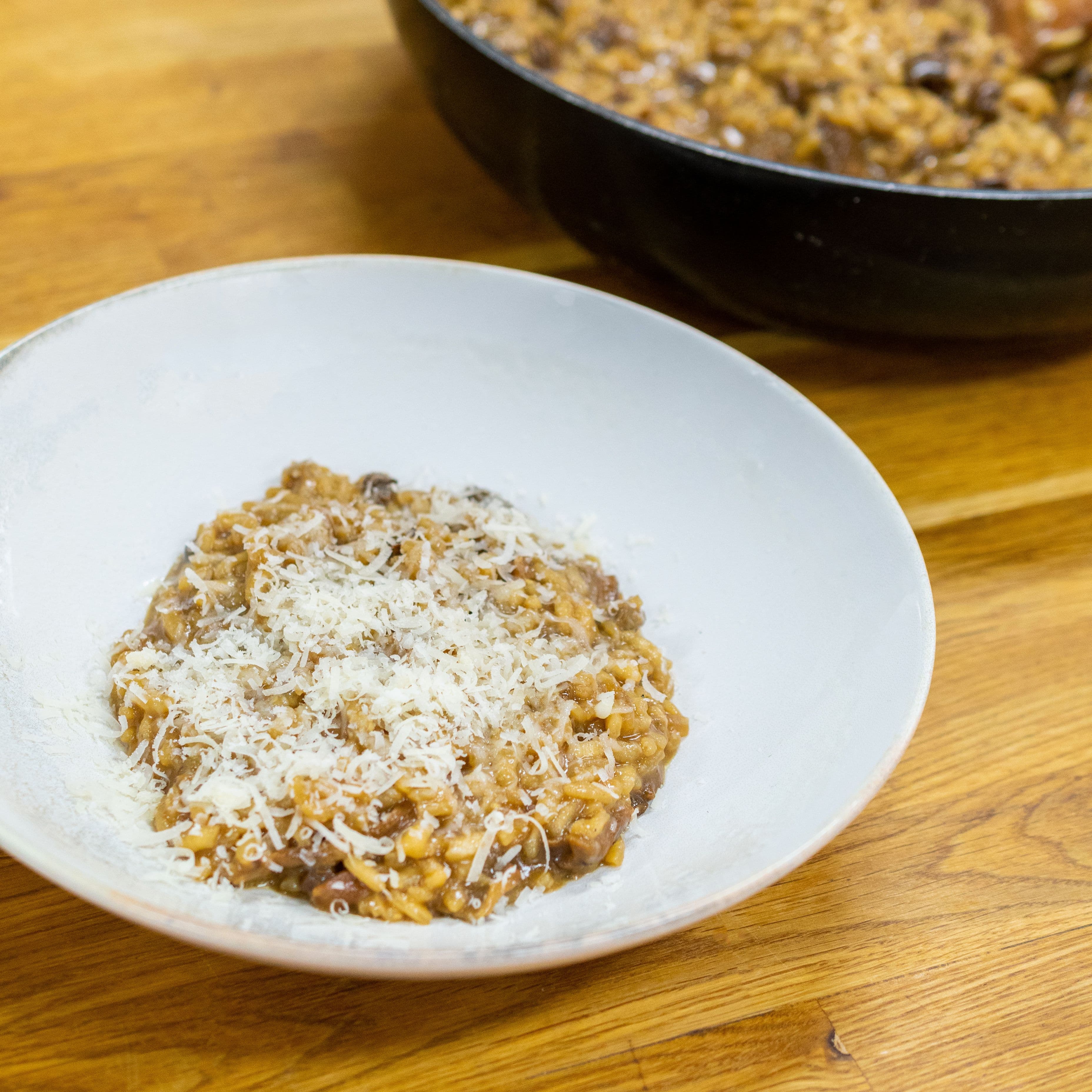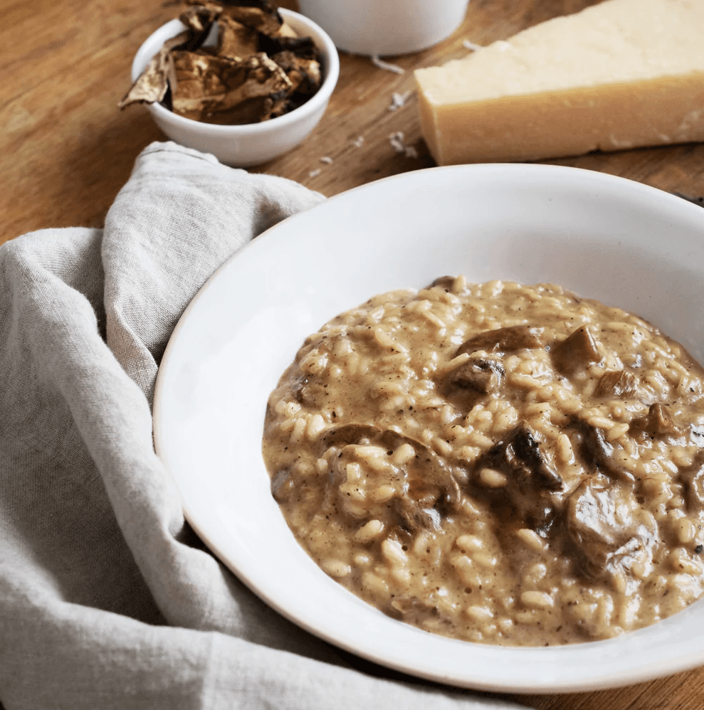 Creamy, rich and indulgent – this Porcini Mushroom Risotto is full of flavour thanks high-quality Arborio rice, beautiful Parmigiano Reggian DOP and a drizzle of Umbrian truffle olive oil for a little decadence. Enough for 4 people with plenty leftover, this recipe comes together in around 25 minutes and uses only the best ingredients straight from Italy.